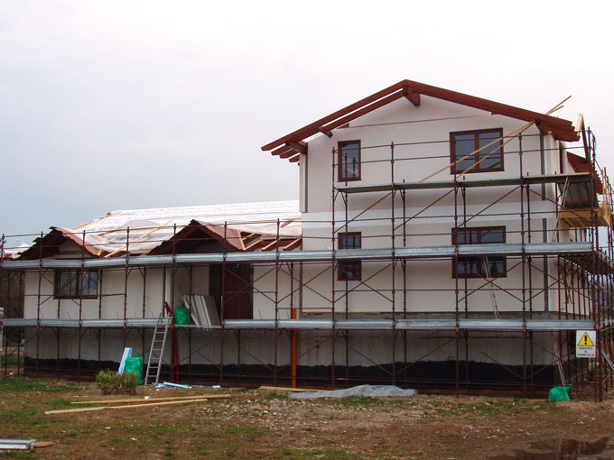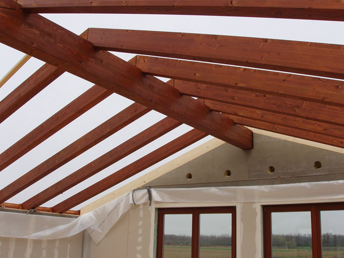 Il montaggio prosegue con ordine programmato posizionando prima il perimetro e successivamente le pareti interne. Le pareti esterne, quelle interne ed i solai sono prefabbricati, mentre il tetto viene assemblato completamente in cantiere. Dopo l'assemblaggio dei puntoni si procede con la posa delle perline, dell'isolamento, della guaina impermeabile, dei listelli di ventilazione e dei listelli orizzontali porta tegola.