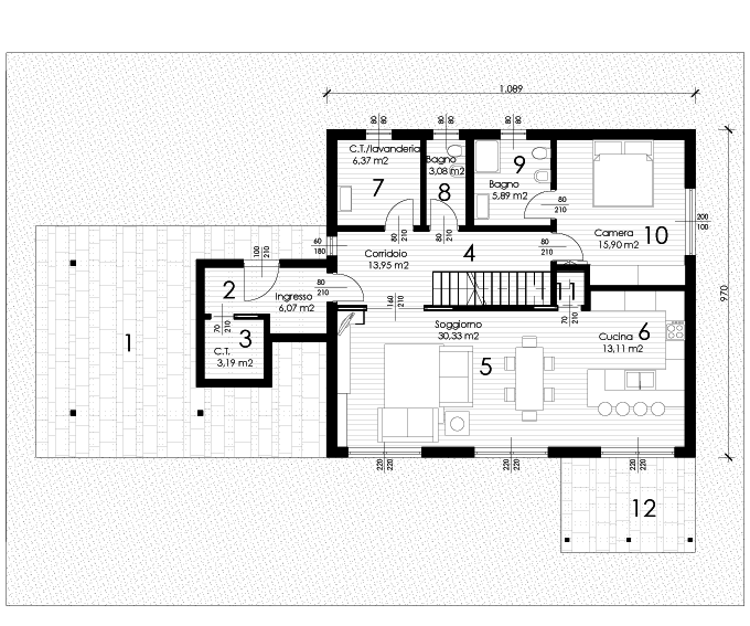 | 9 | bagno | 10 | camera | 11 | ripostiglio | 12 | pergola |