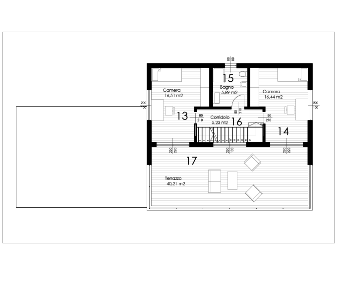 | 5 | soggiorno - pranzo | 17 | terrazzo |