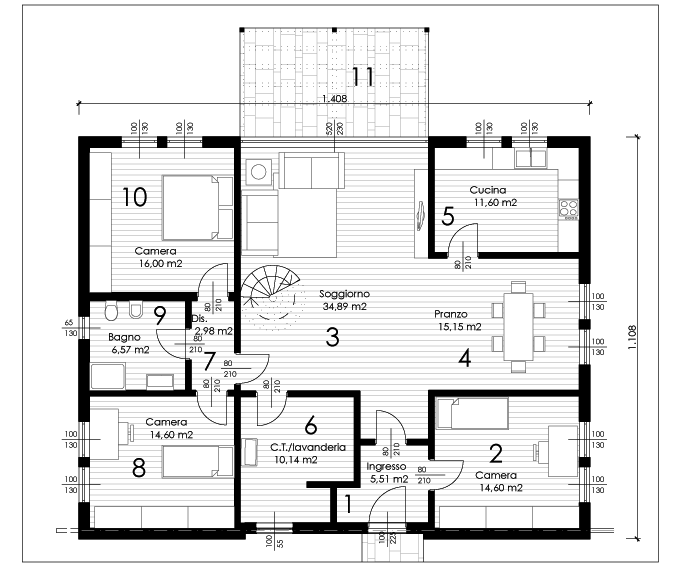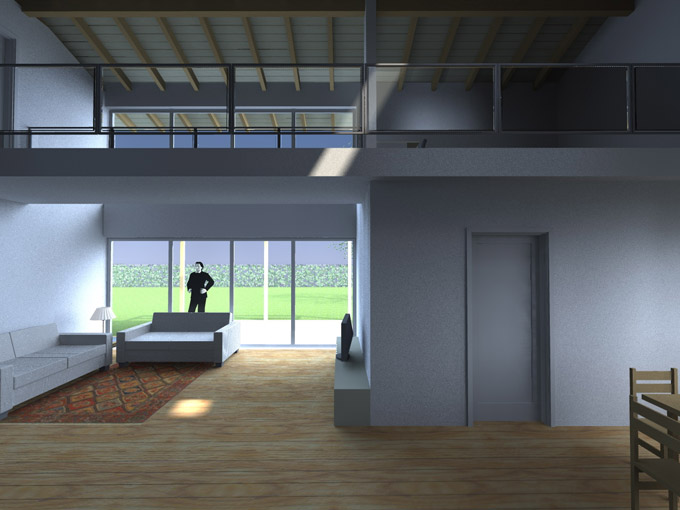 Casa unifamiliare molto spaziosa in stile moderno. Un soppalco interno valorizza lo spazio donando fascino agli interni.