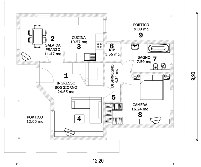 | 1 | ingresso | 10 | disimpegno |