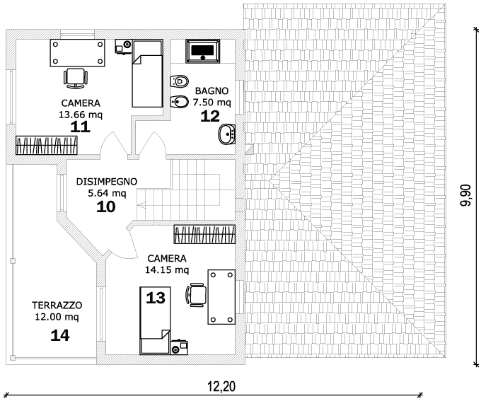 | 5 | disimpegno | 14 | terrazzo |