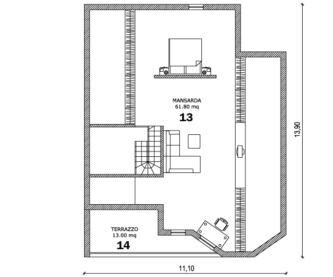 Casa residenziale di stile particolare, a pianta irregolare, stravagante. E’ la casa ideale per tutti coloro che vogliono mettere in evidenza il proprio stile.Misure esterne del fabbricato: